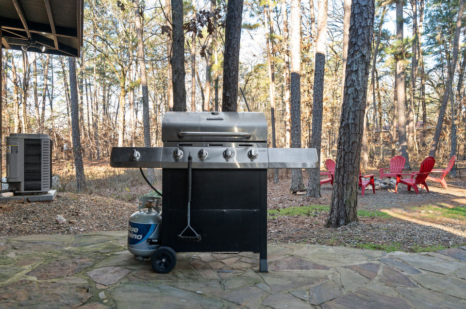Once you exit the highway, you will drive on gravel roads on your way to the cabin for less than 0.5 mi. Located within the Ouachita National Forest. And while it's definitely a retreat in the woods...it's also a perfect base-camp right in the heart of all the great things to do in the Beaver's Bend area (within a couple of miles of The Grateful Head, Mountain Fork Brewery, Hochatown Distilling, escape room adventures, petting zoo, the maze, and a whole host of other restaurants and attractions). The cabin is located in Hochatown with a Broken Bow post office address. Just a short drive to the lake.